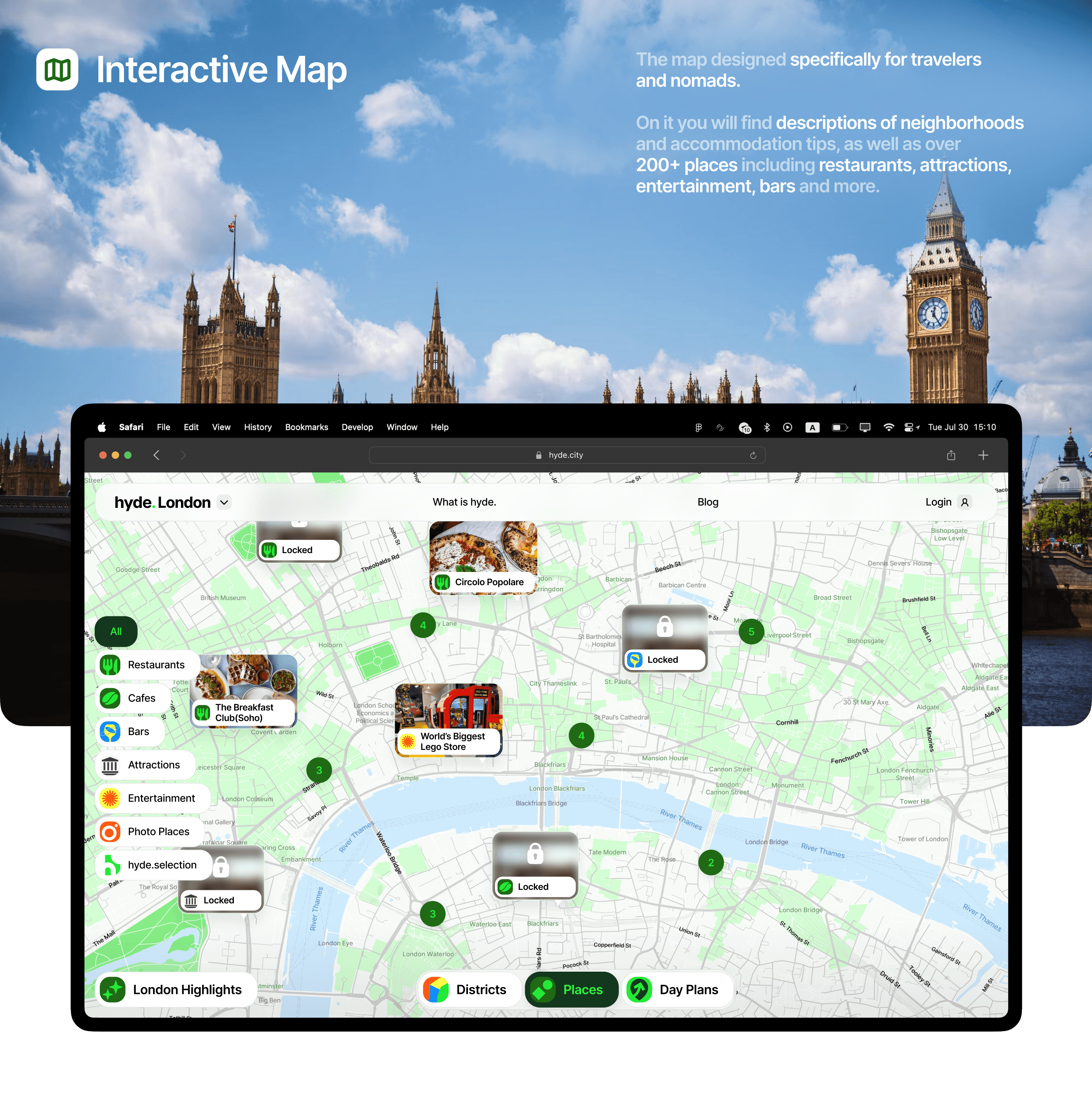 The interactive map features carefully curated selections of top locations in cities around the globe, as well as ready-made daily itineraries based on locals' recommendations.